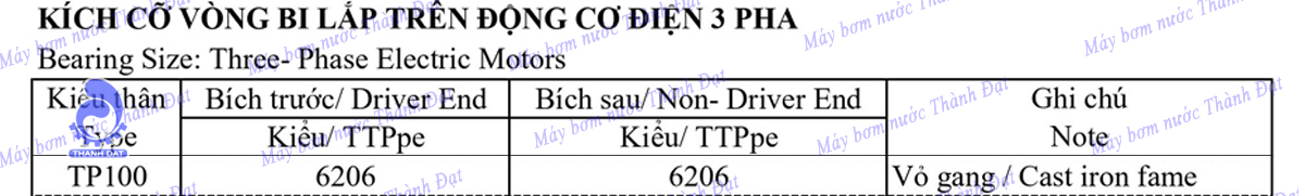 Kích cỡ vòng bi lắp trên động cơ điện Toàn Phát TP100L1-4 3HP 2.2KW 3 pha