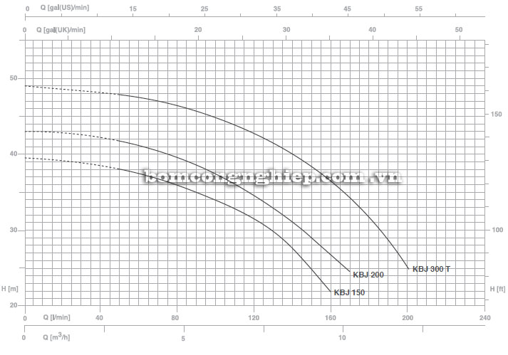 Biểu đồ thông số hoạt động của máy bơm nước Foras KBJ