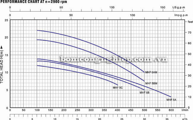 Biểu đồ thông số hoạt động của máy bơm nước Lucky Pro MHF/5AM